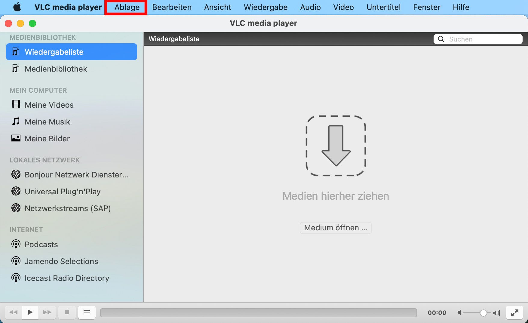 1. Nachdem ihr das Programm heruntergeladen habt, öffnet ihr sie und drückt im Programm oben in der Leiste auf "Medien". |