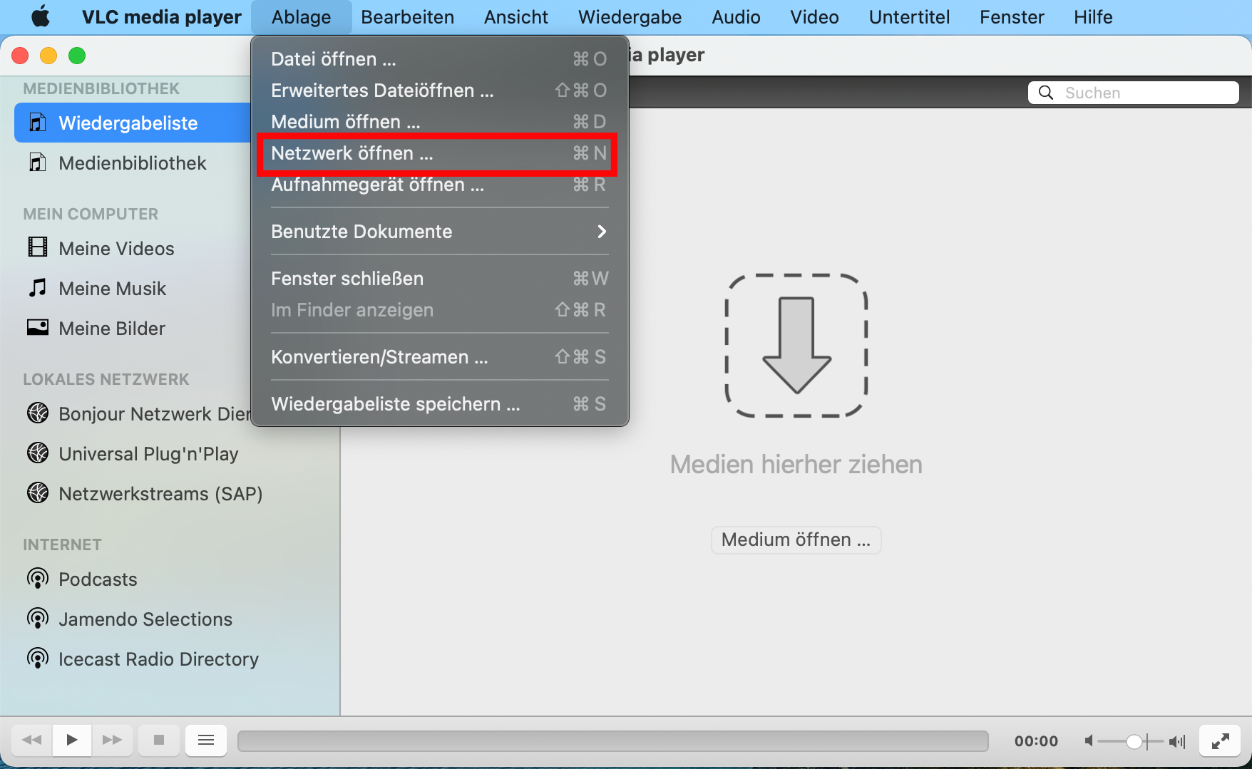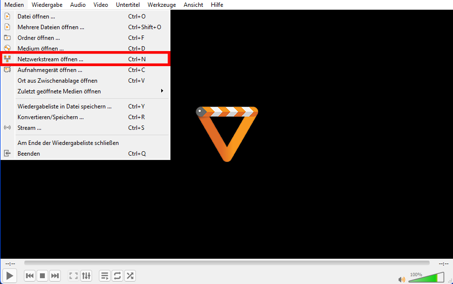 2. Anschließend "Netzwerkstream öffnen ..." wie auf dem Screenshot zu sehen ist. |